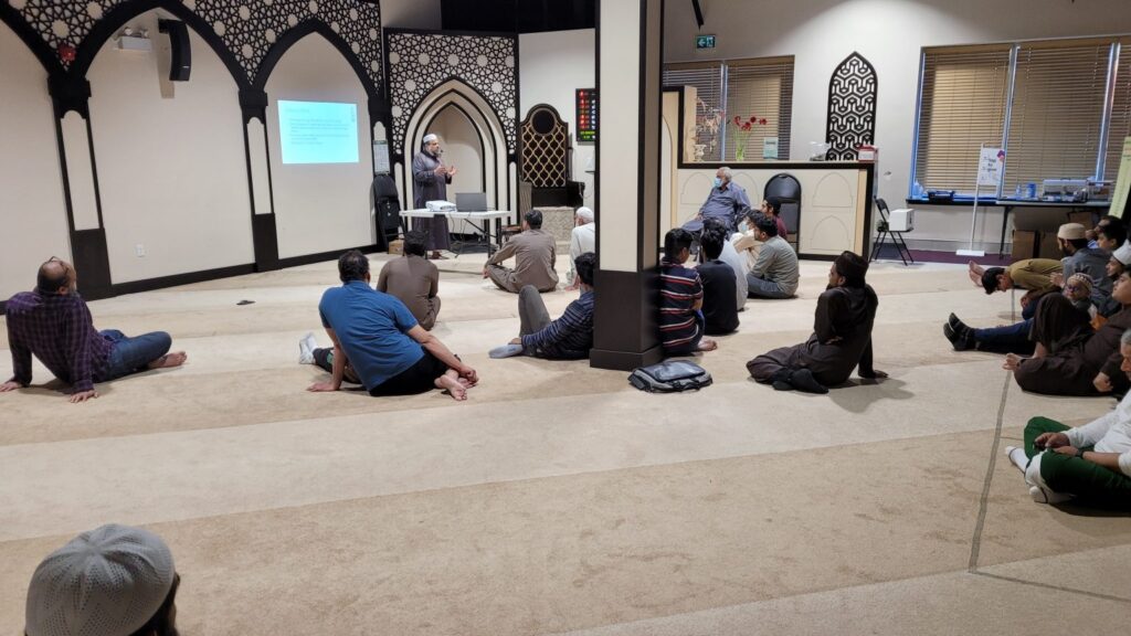 Every Monday after Magrib / Isha’ Salah, Tawheed, Salah, Ilm, Dhikr, Ikraam, Ikhlaas and Dawah are learned and taught during Halaqa Session. These are the tenants of Islam that are learnt and taught by prophet’s companions and Imams of masjids. Muslim visit Muslim brothers of Stouffville and invite them to the join DKC and Halaqa Session. The Halaqah is structured in a way that everyone learns from each other. When: Every Monday immediately after Isha’ (in winter), after Magrib (in summer) Who: Everyone is welcome
